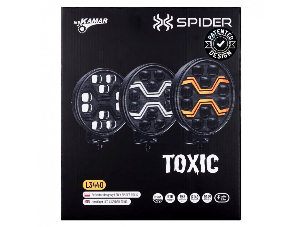 LAMPA PRZEDNIA LED SPIDER TOXIC+OSTRZEGAWSKA+POZYCJONOWANIE 80W+3W+14W, IP69K/2-PACK + prezent 🎁! [L3440]